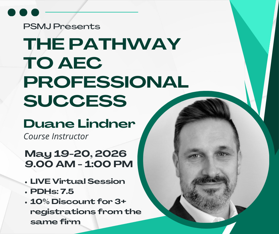 PSMJ Resources' The Pathway to AEC Professional Success training program uses decades of AEC business education experience – including teaching thousands of Project Managers and first-hand insight into what the most profitable firms do to maximize ROI in their entry-level talent – to get your firm’s newest and least-experienced employees more engaged, more productive, and more dialed-in to how they can increase their professional value.